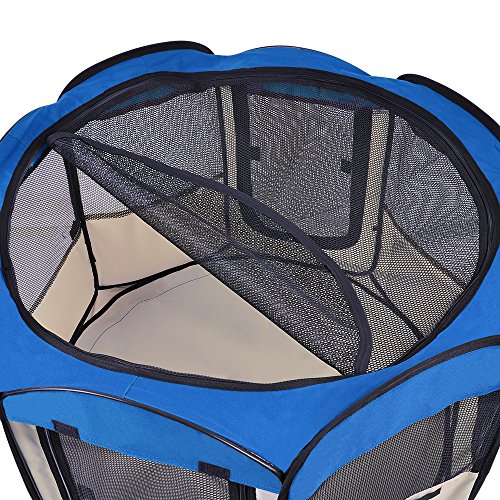 48″ Blue Large 2-Door Waterproof 600D Oxford Cloth Pet Playpen Dog Puppy Tent Exercise Kennel