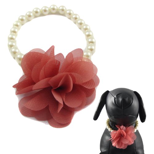 Alfie Couture Designer Pet Jewelry - Yui Pearl Necklace with Chiffon Flower Bouquet - Color: Pink, Size: L (11") for Dogs and Cats 4 out of 5 based on 6 ratings. 6 user reviews