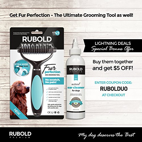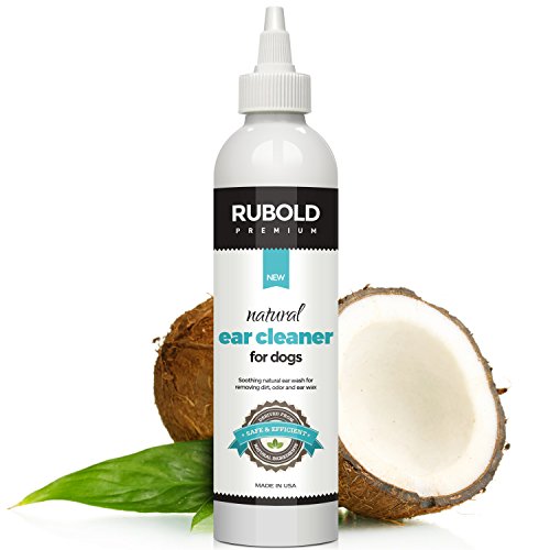 All Natural Dog & Cat Ear Cleaner By Rubold Premium - Soothing & Gentle Cleanser Solution - Fights Mite, Bacteria, Fungus & Yeast Infection - No Harsch Medication or Chemicals - Puppy Safe - 8 Fl Oz