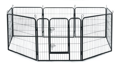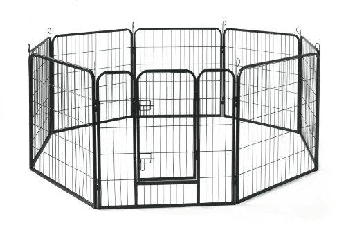 Our metal pet fence is the simple resolution for providing your pet his quite personal back-yard play location and eliminating any worries about his whereabouts. It beats flimsy metal or plastic fences by miles given that it really is durably constructed of hefty-gauge metal wire with a rust-proof black powdercoat finish. Eight separate panels snap with each other very easily - no tools required. The versatile layout permits you to reconfigure it into a pet barricade. It\'s portable which makes it ideal for traveling to a park or camp internet site, or setting up an exercise or education pen. And, when not in use, it folds away for effortless storage. Each of the eight panels measures 31.4\" broad when assembled it offers you six.27 feet of taking part in area.