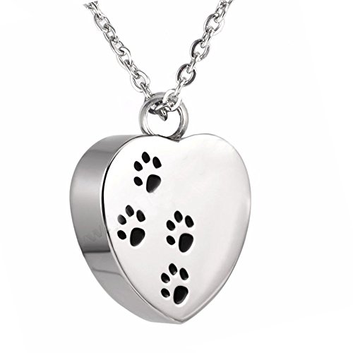 AMIST keepsake pendants bring memories to an even much more personalized degree by holding a little portion of cremated remains, a lock of hair or dried ceremonial flowers. On the elegant Heart is a string of paw print that is stamped on the front of your pet cremation pendant. You will get a free matching chain for your ease.