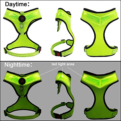 Aodoor LED Dog Harness Light Soft Mesh Dog Puppy Pet Harness Adjustable (green, Medium)