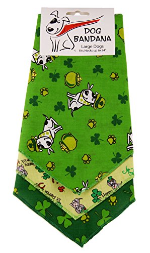 Pack of 3 Tie on triangle St. Patrick\'s day bandanas. Measures 29 inches, appropriate for Big dogs. V-neck form for best match, decorative stitch with matching thread for stylish seem. Perfect gift for Pet lovers, Proudly created in the USA.