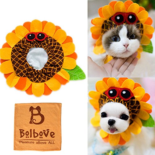 Hats Bro'Bear Pet Funny Sunflower Hat with Glasses Design for Small Dogs & Cats Party Costume Headwear Orange (Large) If you want a unique pet hat to have your pet get as much attention as you, make sure they have the lovely hat they deserve and want. Size Large: Fit dog\'s Neck Girth 12.5\"- 15.5\", Head Girth 15.5\"-18\" (best for pets from 7 to 16 Lbs) Package included: 1*Pet hat $9.99 http://ecx.images-amazon.com/images/I/51xj-pV8OYL._SL160_.jpg