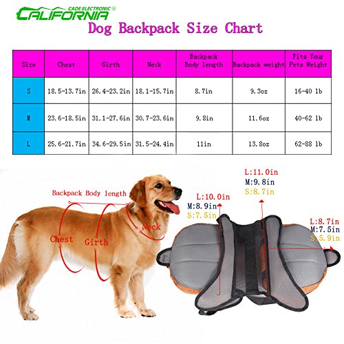 Cade Backpack is a excellent solution when you go out walk with your canine.  It includes area for foods, water and other gears.The belt can be adjust the size for the chest,and it really is adjustable in the neck circumference element. Your puppy would love this bag at ourdoor pursuits!  There is a manage assisting lift dog up and more than obstacles This customized developed backpack is convenient and resilient and is certain to leave your dog begging for much more adventures! Size:  M:Chest Dimension:27.5-32 inches, Abdomen Size: sixteen-21.6 inches, Neck Size:20-23.6 inches  Suitable Excess weight for Pet:39.three-61 lbs, Item Bodyweight: .725 lbs L:Chest Dimension:Chest Dimension:31.five--34 inches, Stomach Dimension: 26-39 inches,Neck Size: 24-31 inches, Ideal Bodyweight for Pet:61-87.5 pounds,Product Bodyweight: .83 pounds