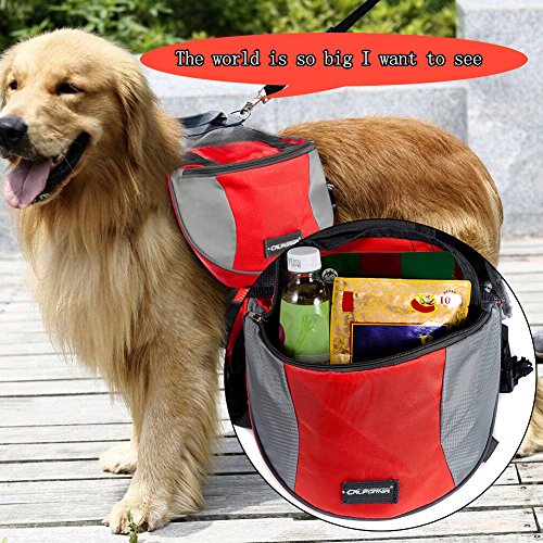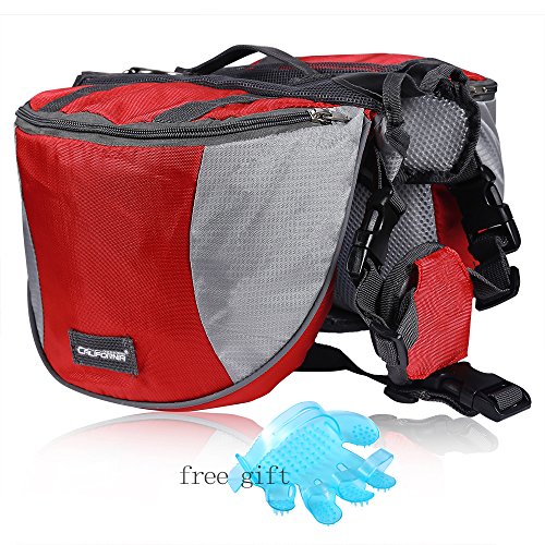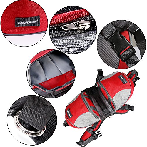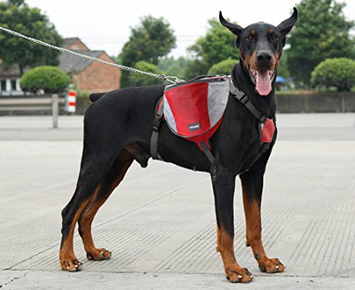 Cade Outdoor Hiking Camping Training Adjustable Dog Saddle-harness Bag Large Capacity Dog Backpack with Reflective Stripe (L, red)