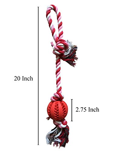Chew Rope Toy Red for Dogs Puppies - with Strong Play Ball for Tug of War - Best for Medium & Small Breeds - Extended Warranty