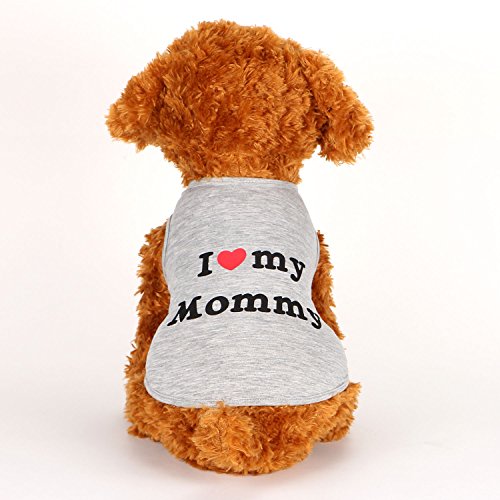 Commoditie(TM) Pet Dog Cat Cute I Love My Mommy Puppy Shirt Small Dog Apparel Summer Dress Size Medium – Grey Color — DESIGNED FOR SMALL BREED DOGS