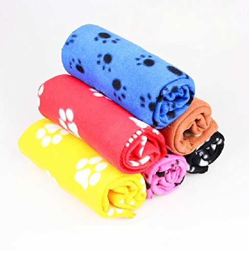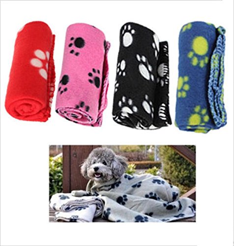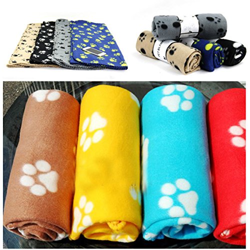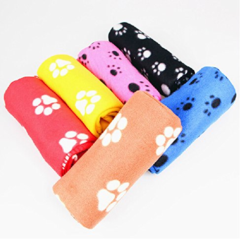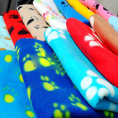 Cute Soft Warm Pet Puppy Dog Cat Paw Print Fleece Blanket Mat Pad Bed Cover Random Color