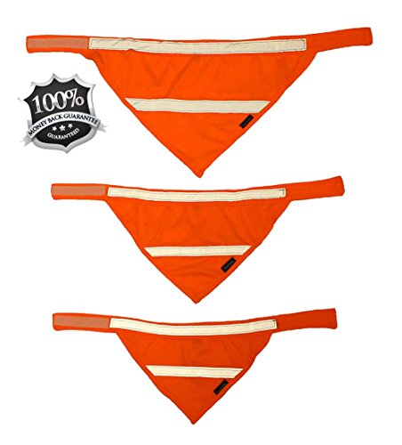 Dog Reflective Gear, Walk your Dog Safely with this Blaze Orange Bandana with White Reflective Stripes, Visible at Night for your Dog's Protection, Easy to Use, Comfortable for your Pet, The Safety Scarf Your Dog Will Love To Wear (Medium)