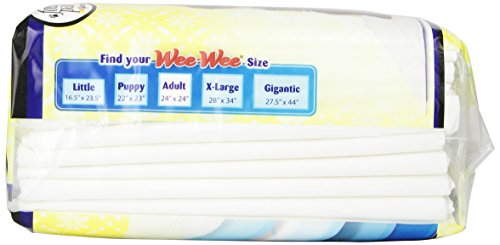 Wee-Wee Pads for Adult Canines supply all day safety for pets at home alone, ailing or incontinent. Made with a five-ply leak proof Floor Armor™ program, the special quilted leading locks in moisture and neutralizes odors whilst the leak proof liner protects floors and carpets. Scientifically handled to entice canines when nature calls, this more substantial pad measures 24\" x 24\". Obtainable in four package sizes.