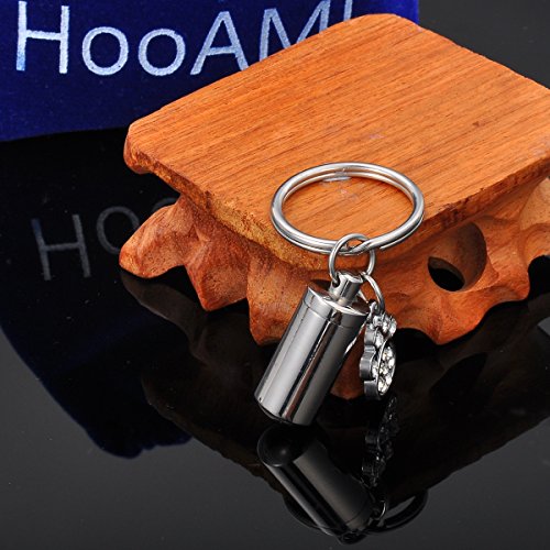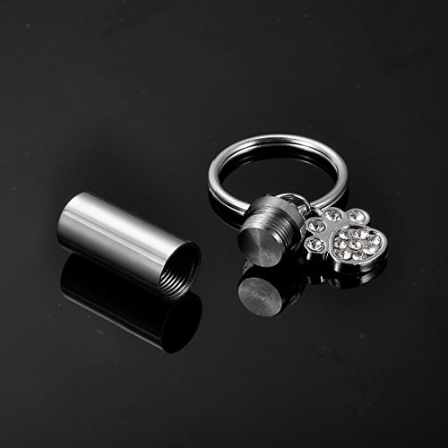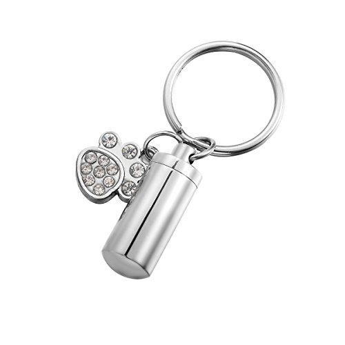 HooAMI Crystal Puppy Dog Paw with Cylinder Charm Pet Cremation Urn Keychain Memorial Keepsakes