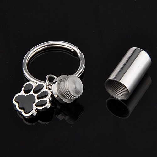 HooAMI Pet Cremation Urn Keychain Keepsake Puppy Dog Paw with Cylinder Charm Stainless Steel Keyring