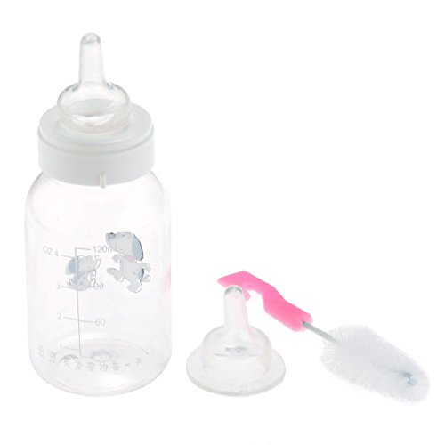 Material: plastic. Shade: transparent. Capacity: about 120ml. Feeding bottle dimension (not including nipple): about 10 x 5.5 x 5.five cm. ++ Description ++ one x Pet feeding bottle kit (Feeding bottle + nipple + bottle brush).