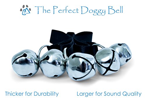 - THE PERFECT DOGGY BELL... Don't settle for dog bells that sound like cheap plastic. Our bells are specifically constructed with sound quality and durability in mind. What makes us different? We use large thick-walled jingle bells that are constructed from an optimal blend of metals that not only sound great, but are strong enough to resist stress from the most playful dogs.