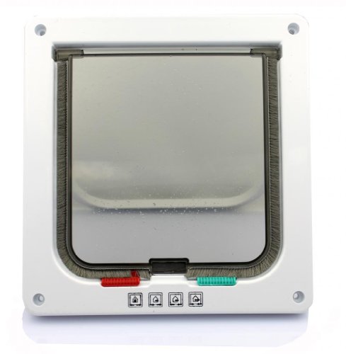 Namsan 4 Way Cat Puppy Doggie Lockable Door For Window/Door –White Medium (7.5″ X 7.1″ Opening)