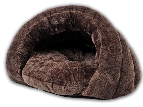 [New Release, February 2016] PLS Pet Cuddle Pouch Pet Bed (Small), Bag, Covered Hodded Pet Bed, Igloo-Shaped Lounger, Cosy, For Cats and Puppies, Brown