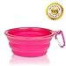 Nom Nom Puppy Collapsible, Eco-friendly, Portable Travel Pet Water Bowl (12 Oz) with Free Bonus Carabiner Belt Clip - Lightweight, Convenient, Travel Cup, Durable, Pop-up, Silicone Dog Bowl - Pet Safe - 100% Satisfaction Guaranteed (Pink)