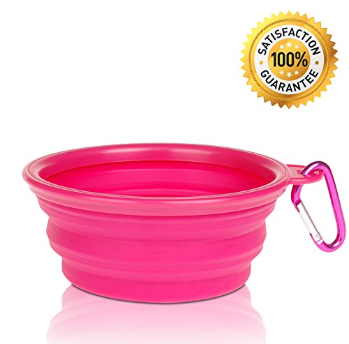 Nom Nom Puppy Collapsible, Eco-pleasant, Portable Travel Pet Water Bowl (12 Oz) with Free of charge Bonus Carabiner Belt Clip - Lightweight, Handy, Travel Cup, Tough, Pop-up, Silicone Dog Bowl - Pet Secure - 100% Satisfaction Guaranteed (Pink)