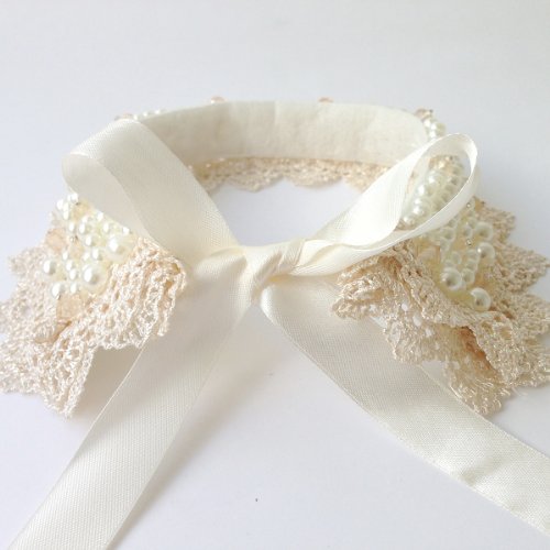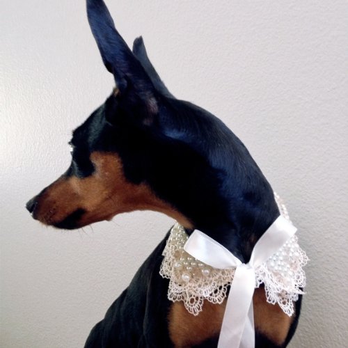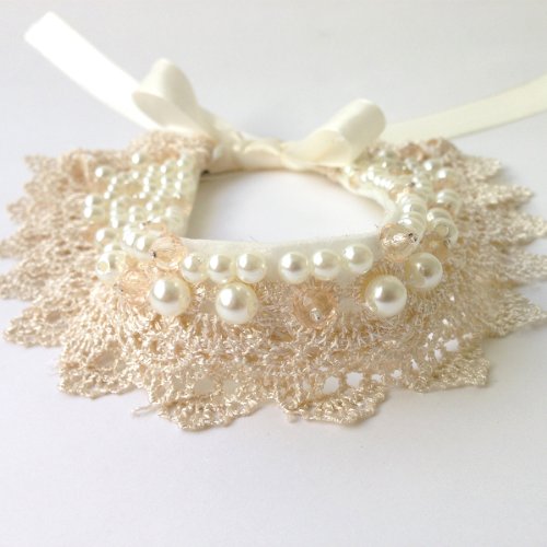 - Beautiful accessory is a must have for your pooch; Its has a bed of decorative pearls that are woven into an elegant lace necklace