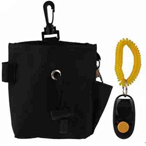 Pet Dog Treat Pouch Bag WITH Clicker For Reward Training Treat Storage and Delivery (BLACK) Bait Bag INCLUDES Clicker For Puppy Adult Dog Marker Reward Based Positive Reinforcement Training supplies