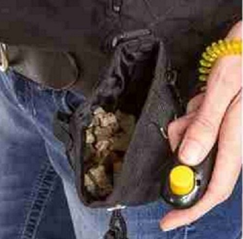 - Dog Training Treat Bag + Training Clicker (clicker colors vary) Pouch Bag closes easily with a tug and stays closed, keeping dog noses out!
