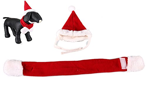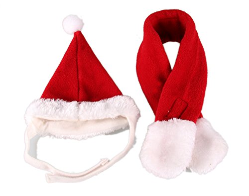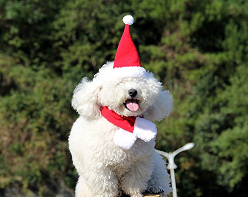 Pet Leso® Cat Christmas Hat With Muffler Puppy Dog Santa Hat, Red -S