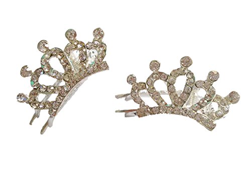 PET SHOW Crown Rhinestone Girls Pet Cat Dog Hair Clips Grooming Accessories Color Clear+Silver Pack of 2