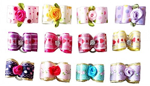 PET SHOW Rose Heart Pet Topknot Hair Bows with Rubber Bands Dog Cat Puppy Grooming Hair Accessories Random Color for Valentine’s Day Pack of 20