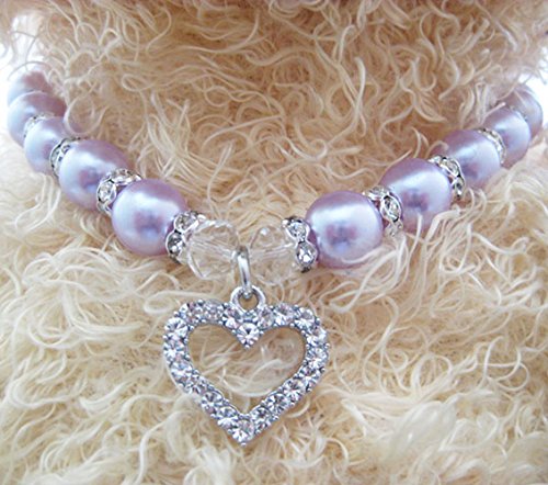 PETFAVORITES™ Couture Designer Fancy Engraved Crystal Heart Pet Cat Dog Necklace Jewelry with Bling Pearls Rhinestones Charm Pendant for Pets Cats Small Dogs Female Puppy Chihuahua Yorkie Girl Costume Outfits, Adjustable and Handmade (Purple, Neck Size: 8"-10") 4.6 out of 5 based on 5 ratings. 5 user reviews