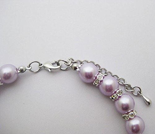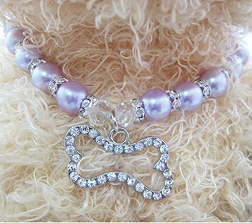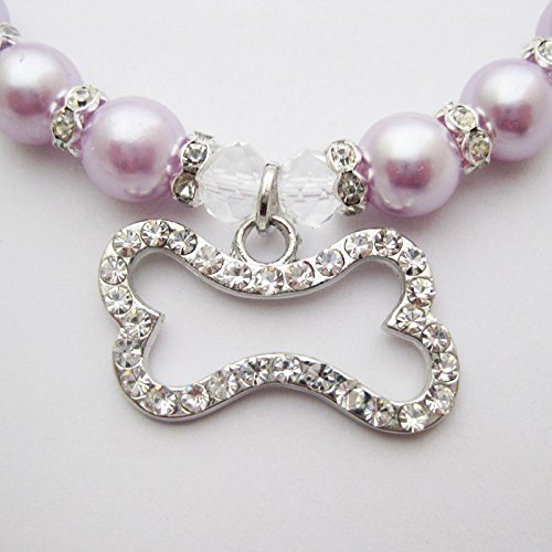 PetFavorites(TM) Couture Designer Fancy Engraved Crystal Bone Pet Cat Dog Necklace Collar Jewelry with Bling Pearls Rhinestones Charm Pendant for Pets Cats Small Dogs Female Puppy Chihuahua Yorkie Girl Costume Outfits, Adjustable and Handmade (Purple, Neck Size: 10"-12")