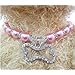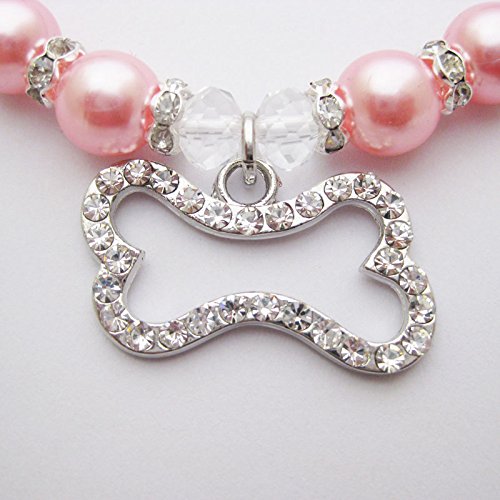 PetFavorites(TM) Couture Designer Fancy Engraved Crystal Bone Pet Cat Dog Necklace Collar Jewelry with Bling Pearls Rhinestones Charm Pendant for Pets Cats Small Dogs Female Puppy Chihuahua Yorkie Girl Costume Outfits, Adjustable and Handmade (Pink, Neck Size: 12"-14")