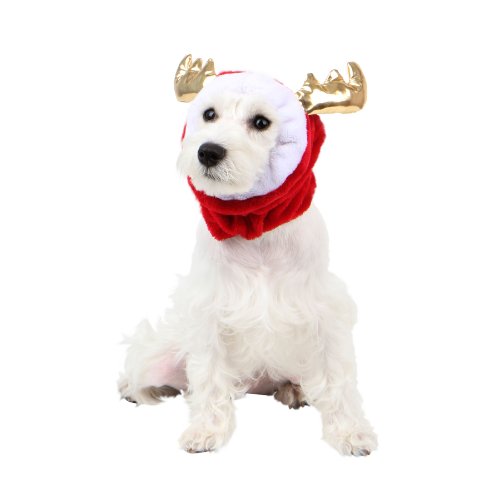 - Warm Winter Dog Snood (Scarf + hood) In Holiday Theme with Gold Tone Antlers