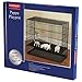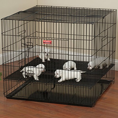 - Features an elevated floor grate that keeps puppies above the floor pan