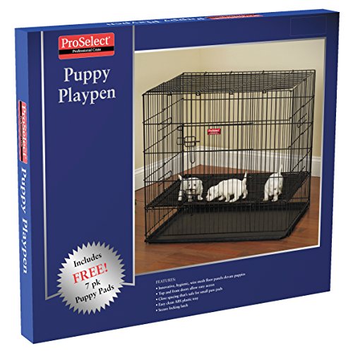 ProSelect Puppy Playpens are an perfect solution for securely containing puppies. Each and every puppy playpen attributes an elevated floor grate that keeps puppies above the floor pan. Our ProSelect Puppy Playpens are ideal for retaining puppies clean and dry. Progressive, hygienic, wire mesh floor panels elevate puppies and attribute near spacing that’s protected for little paw pads. • Involves plastic tray for simple cleaning • Top and front doors allow simple access • Manufactured of sturdy 3, eight, eleven, 12-gauge wire with ½\" x six\" spacing • Powder-coated finish Each ProSelect Puppy Playpen includes a seven-pack of Totally free Puppy Pads. Replacement trays are accessible and sold separately. Material: Powder coated steel plastic tray Size: • Small measures 36\"L x 24\"W x 30\"H • Medium measures 36\"L x 36\"W x thirty\"H • Large measures 48\"L x 48\"W x 30\"H Care: Wipe clean with soap and water Close ½\" x 6\" spacing is secure for tiny paws.