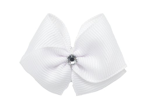Puppy Kisses Designer Puppy Hair Bows are hand-created in the U.S. with substantial top quality grosgrain ribbon. On white ribbon our Ocean hair bow comes complete with a SWAROVSKI Elements center. This hair bow is crafted on a 1\" French fashion metal barrette and is made up of an interior no slip grip. Each bow measures 1\"x1\" and is finished with a fabric thickening agent to sustain form and sturdiness.