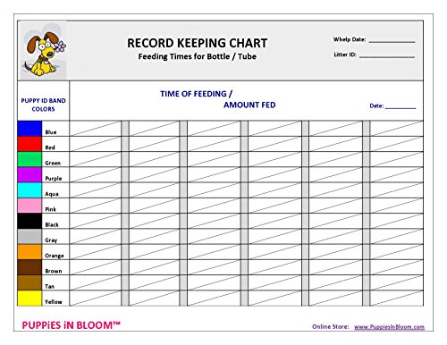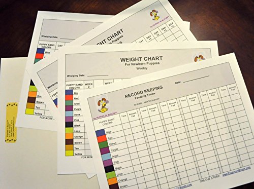 Record Keeping Charts by PUPPiES iN BLOOMTM are developed to use with our Puppy ID Bands as shown in the photos. (Puppy ID Bands are sold individually and NOT included with the charts.) The charts and puppy bands are shade coordinated with each other so the breeder can very easily log information of each puppy according to the colour of his collar. Maintaining records has never ever been simpler. 1 SET of four Master Charts - Make your very own copies and save the Master prints to use above and above yet again. Share with your buddies. Keep thorough data on whelping, feeding occasions and weight obtain.