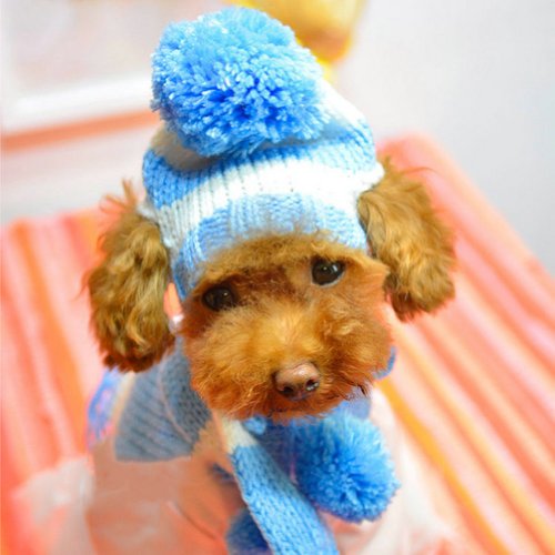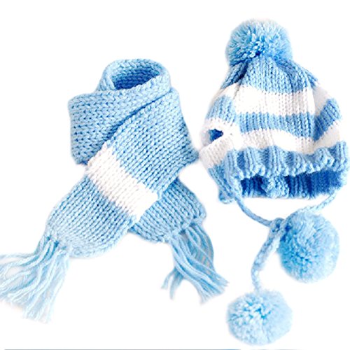 Silvercell Puppy Pet Dog Scarf Pom-pom Cap Collar Clothes Costume Knitted Hat Blue S