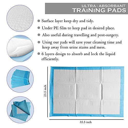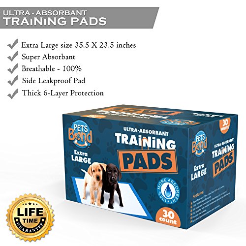 PETSBOND Canine Coaching PADS: Made FOR PET OWNERS WHO CARE ABOUT THEIR Canine AND THEIR FLOORS Want to keep away from cleaning your doggie mess each time he eliminates? There is absolutely nothing less complicated as prolonged as you have the PetsBond Puppy Education Pads!What truly locations these pads miles ahead of competitors is their exceptional absorption capacity. Thanks to their extra thick six-layer protection and fluff absorber with rhombic embossment, the pads can absorb more substantial quantities of liquids, so they are just perfect for training any puppy. Their back sheet ensures cleanliness and prevents leaks that could harm your rug or floor even when there are extremely huge quantities of liquid trapped inside. The PetsBond Canine Education Pads are further big, measuring 35.5 x 23.5 inches, theyââ€Â¢are massive sufficient for any dog, regardless of breed or age. Regardless of whether you want to train a Big Dane or cover the total floor with these pads, they will admirably do their job, making sure that your potty training efforts will be rewarded in the end. The soft and breathable upper layer of the pads stays dry, for that reason guaranteeing that your four-legged companion will be comfortable even if he has just eliminated. A couple of of the most notable pros of these puppy instruction pads contain: Added thick 6-layer safety and fluff absorber with rhombic embossment for absorbency. Back sheet assured cleanliness and prevents leaks. Additional large pads accommodate any pup or adult dog. Soft and breathable upper layer stays dry. Lifetime income-back promise! Arranging to potty train your puppy? Then click the Add to Cart