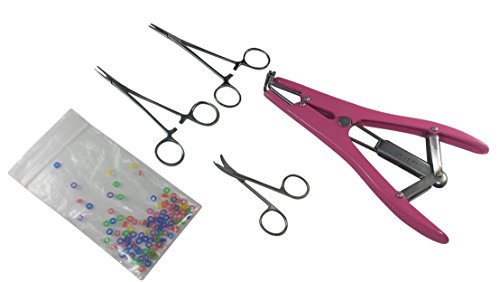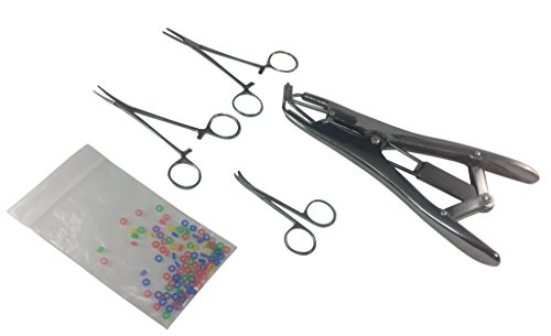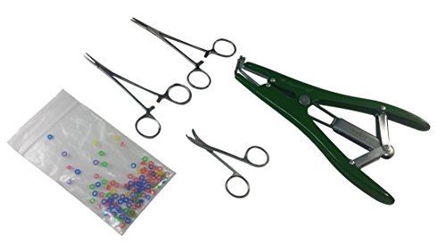 Kit involves: 1. Elastrator two. Mosquito hemostat forceps stainless steel - five\" straight 3. Mosquito hemostat forceps stainless steel - 5\" curved 4. Suture scissors stainless steel - three.5\" with little hook to place beneath the dewclaw toe 5. one hundred small colored bands - 4.5 oz 1/eight\" (three.2mm) diameter