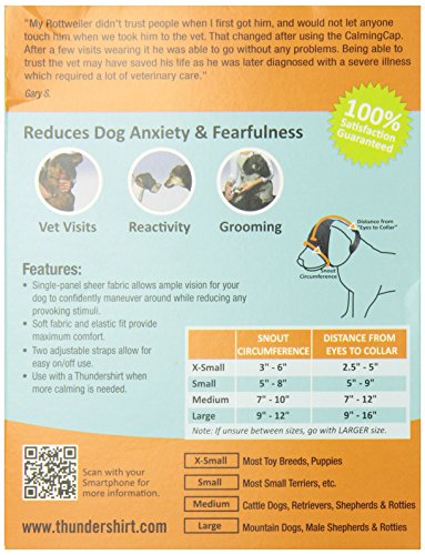 ThunderCap for Dogs. The ThunderCap lowers visual stimuli and assists your canine to stay comfy, conquer their fearfulness and boost their self-assurance. The single-panel sheet fabric window does not blind your canine, but basically filters their see in buy to lessen the visual stimulation that your pet could experience which helps them in nerve-racking scenarios. Functions: See-through material that minimizes visual stimulation while enabling the dog to maneuver via its surroundings. Soft material and elastic match for optimum comfort, Excellent for situations the place the puppy experiences reactive behavior this kind of as vet visits, grooming, and walks. Performs fantastic in combination with a ThunderShirt in some circumstances. Fit: Size XS Snout Circumference: three\" - six\" - distance amongst eyes to collar two.five\" - five\" Dimension S Snout Circumference: 5\" - 8\" - distance among eyes to collar five\" - 9\" Size M Snout Circumference: 7\" - ten\" - distance in between eyes to collar seven\" - 12\" Dimension L Snout Circumference: seven\" - ten\" - distance amongst eyes to collar 9\" - 16\"