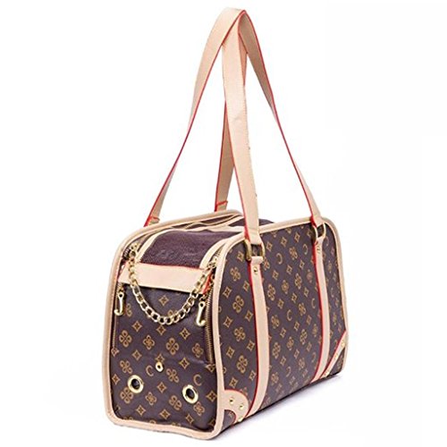 Tom Clovers New PU Leather Dog Carrier Pet Bag Tote Puppies Handbag Cate Cage Doggy Purse Brown Small