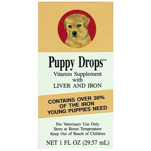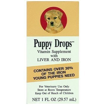 Daily vitamin supplement with liver, iron and essential vitamins that puppies accept readily. Puppy Drops is a large potency liquid formula that aids build wholesome puppies. It is simple to administer-with milk, foods, or straight from the dropper. 1oz.