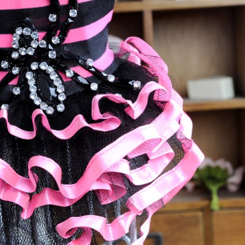 Urparcel Pet Dog Lace Tutu Dress Striped Spider Skirt Princess Clothes Rose M