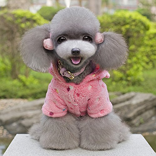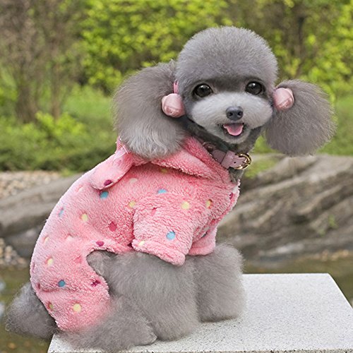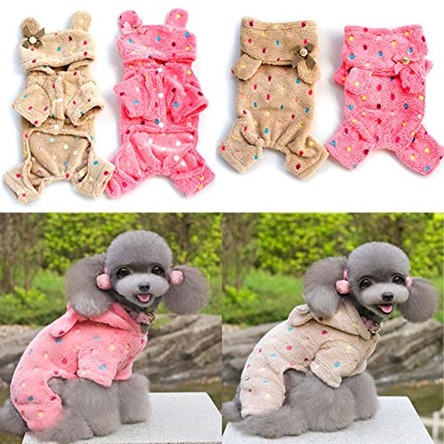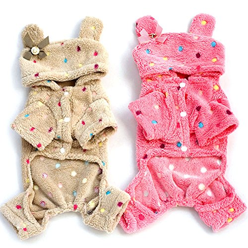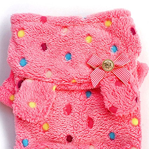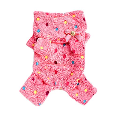 Urparcel Pet Dog Soft Warm Jumpsuit Coat Dot Bow Hoody Clothes Jacket Rose X-Small