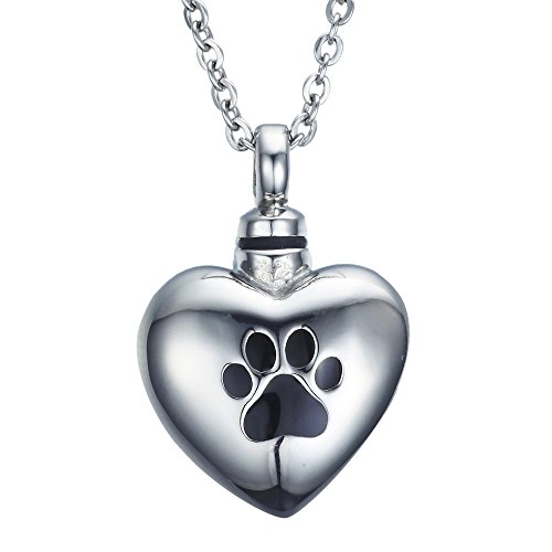 VALYRIA Pet Paw Print on Heart Urn Pendant Necklace Stainless Steel Jewelry with Personalized Engraving