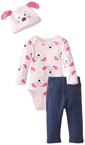 Vitamins Baby Baby-Girls Newborn Puppy Girl 3 Piece Creeper Pant Set, Pink, 3 Months