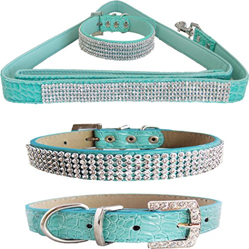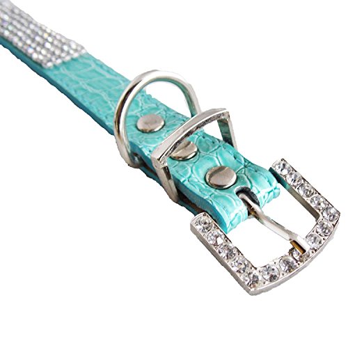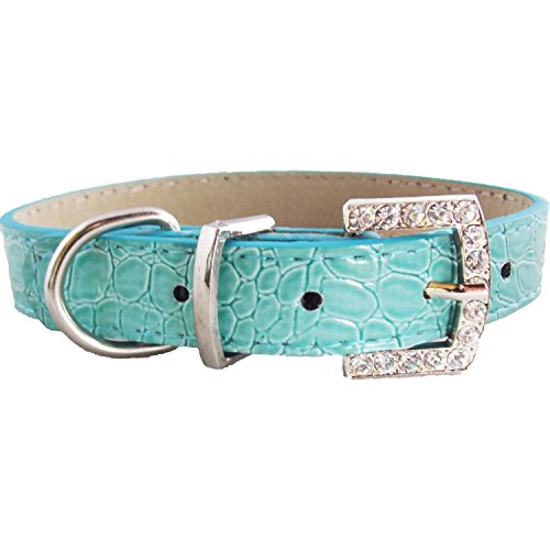 - Includes Medium Teal Crocodile PU Leather Bling Collar & Teal Crocodile Leash