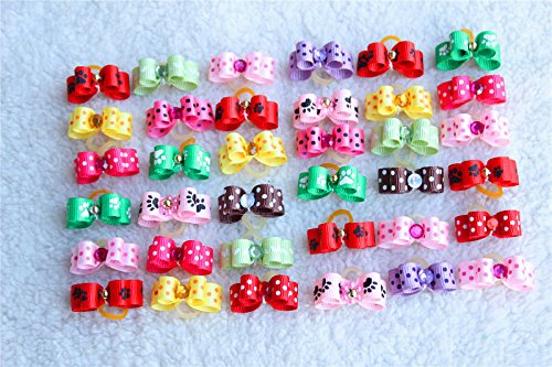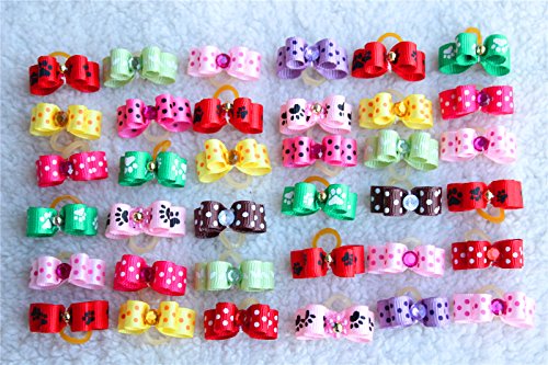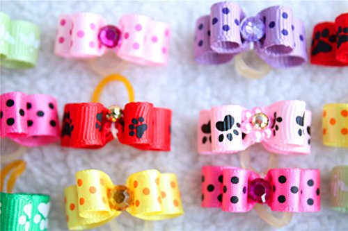 Yagopet handmade dog bows cute bows little size, about .8inches-1inches in width one hundred% prime high quality one hundred% in new situation Multi-colored canine bows best for any event Easy on/effortless off with a rubber band Wonderful dog bows for groomers and pet owners send in mixed all vibrant colours