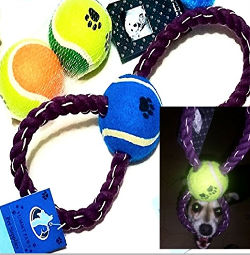Yummy Paws Dog Toys, Plush limbless Squeak Animal, Rope with Ball And Bonus Fetch balls for Dogs/Puppies Cool Interactive 5 Pack Gift Set Great for Tug-O-War/Fetch Pet Chew Toys (colors may very) Rating: